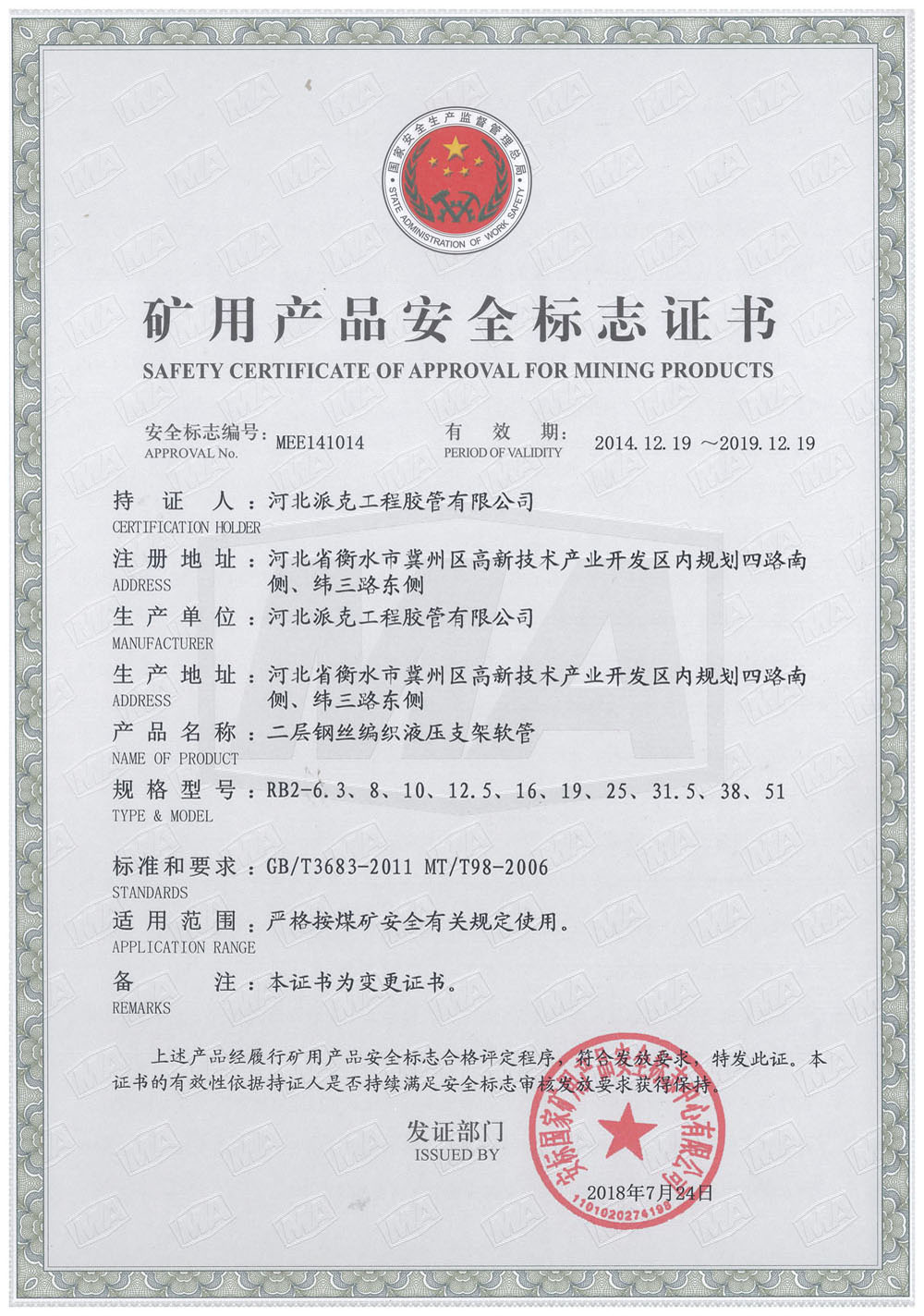 河北派克工程膠管有限公司——資質(zhì)榮譽(yù)